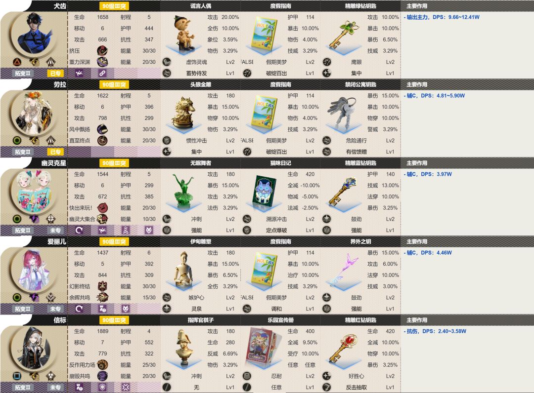 ②本帖数据为模拟对单、高危、500双抗、免疫暴露增伤敌方,我方叠满被动计算得来,仅供参考;