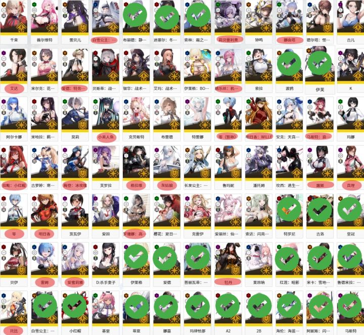 两张图涵盖国际服已经出了的所有角色。绿色是国服已经上了的,图里少了画皮和婴宁,两个都是个突角色,能歪就歪一下。nikke必吃榜,2026新版二图流
