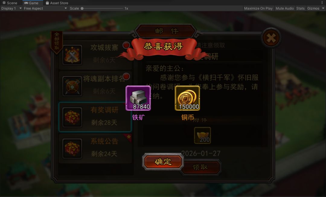 邮件一键领取 · 20级开启