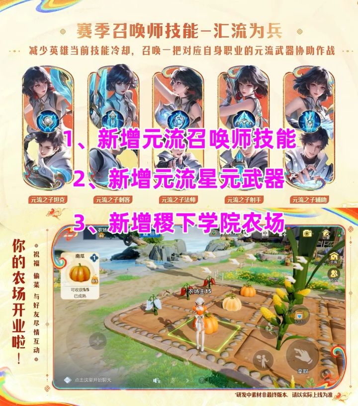 速报!王者玩家集合狂喜🤯 谁懂啊家人们!昨日,2月23日S43赛季重磅爆料来啦,预计4月初正式开启,三大核心更新直接拉满——元流之子星元武器来袭,稷下学院能种菜偷菜,连召唤师技能都有职业专属特效,这波操作直接封神,速来围观详情~#今天游戏圈发生了啥 #王者荣耀