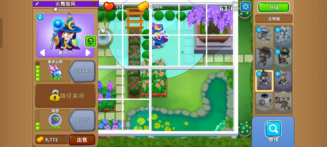 还可以在图上位置放下两个402法师猴,一样轻松通过!