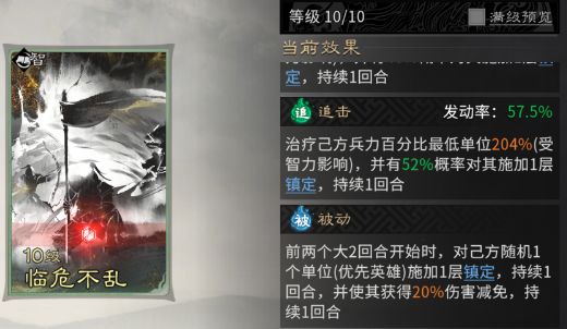 郭嘉的天赋【十胜十败】能为队友叠加【胜机】状态,可稳定提升队伍英雄技能与天赋的发动概率。当【胜机】叠至满层时,更可触发一次天赋或主动技能的额外施放,实现关键回合的连续行动优势。