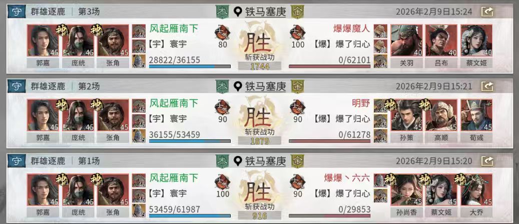 今天为大家推荐一套由张角、庞统、郭嘉组成的强力阵容——连环天雷队。