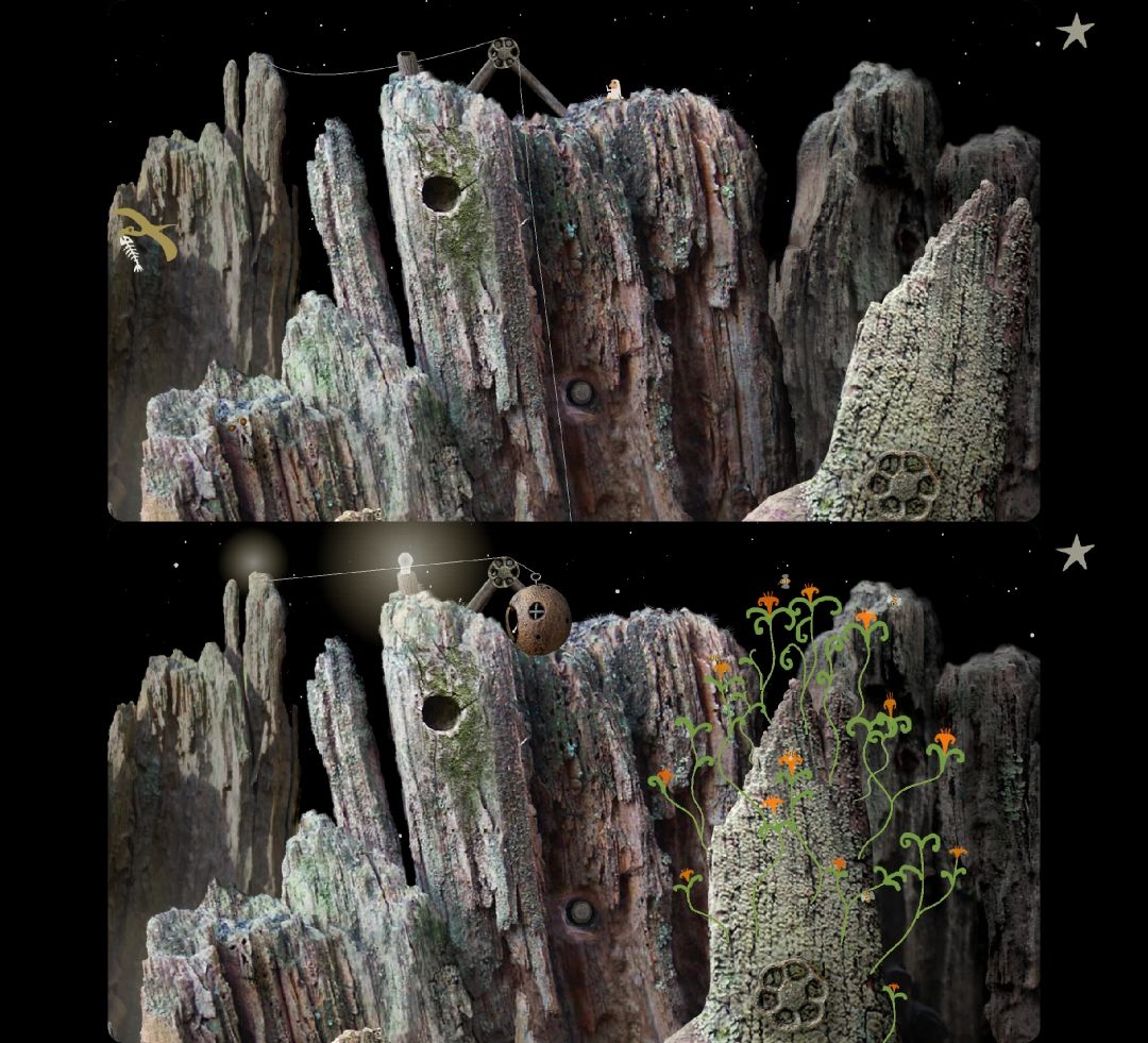 游戏讲的是一个小太空侏儒,深入树根,通过破解各种谜题来拯救家园,避免与其他小行星相撞的故事。游戏共6关,内容简短,谜题简单,画面优美,音效有趣,主要靠玩家的理解与领悟。