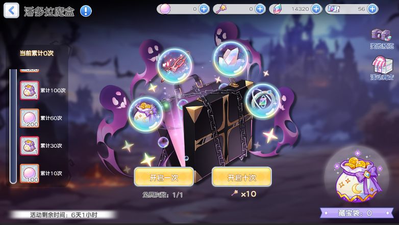 3. 潘多拉魔盒每天有1次免费开启的机会,可通过活动商店获取魔杖来额外开启;