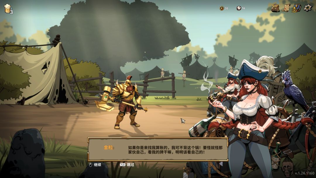 游戏的开头讲述了一个普通的农夫带着他的鸡要去城镇治疗,但是却遇到了凶神恶煞的盗徒,好在传送门及时出现,但是并没有带到安全的地方,反倒是让他和鸡分离开。故事也由此开始,玩家扮演的老兵英雄要去酒馆买醉,正好与歹徒们正面相对,阴差阳错得碰上了一位魔法师也解救了之前的农夫。玩家在每个关卡有固定的剧情任务,可以在地图中看到,然后选择对应的分支即可。