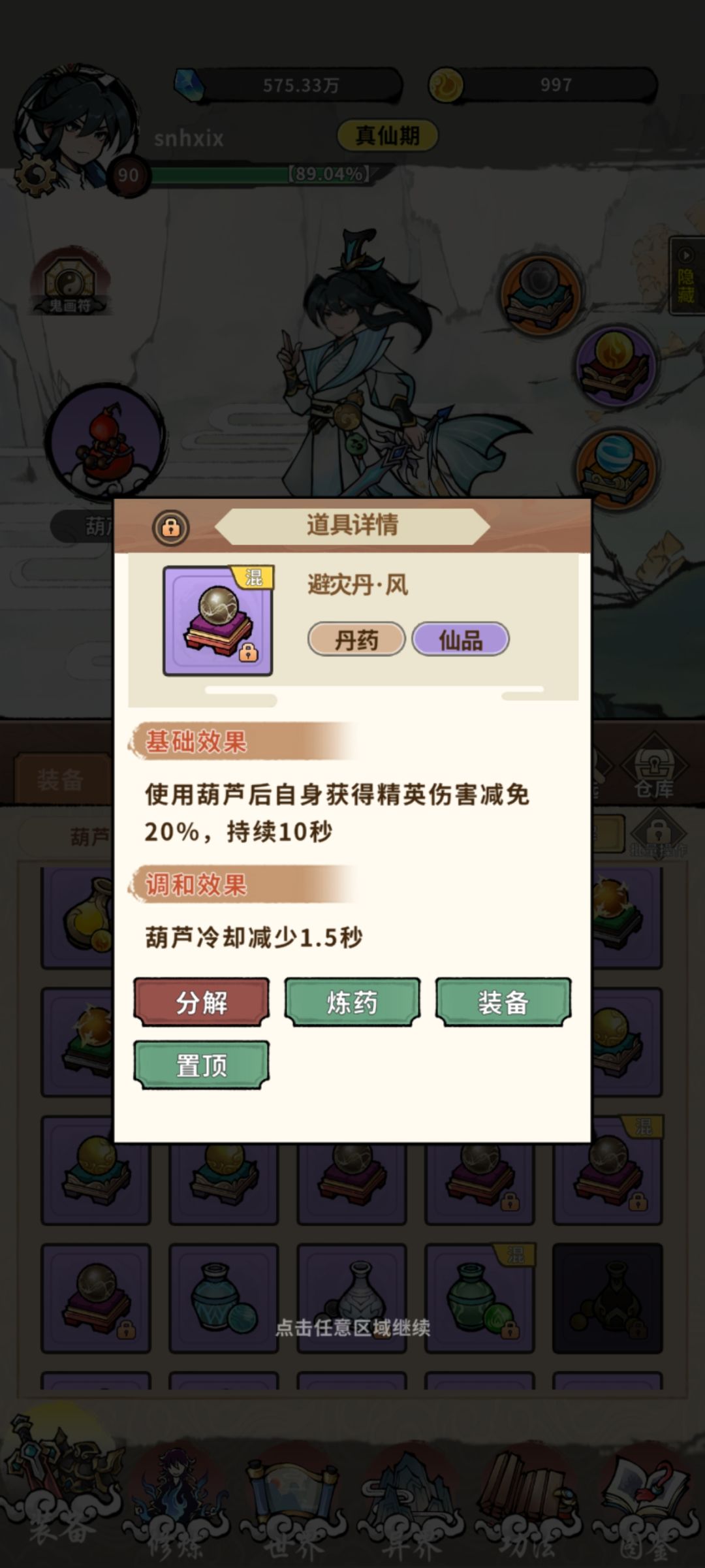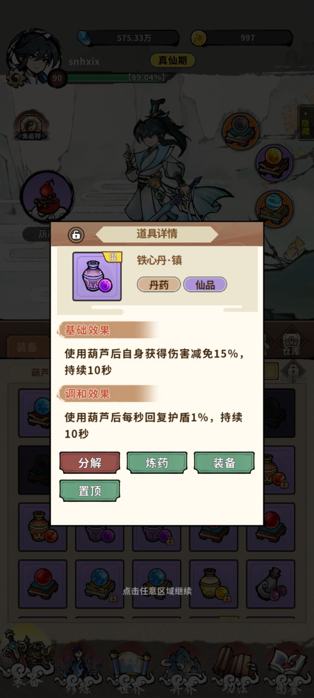 另外葫芦跟丹药很重要,丹药效果基本是维持10秒的,所以为了不断,我们选的葫芦cd最好也是在这个时间。如果你选的葫芦cd长也可以魔化葫芦和炼药减cd。