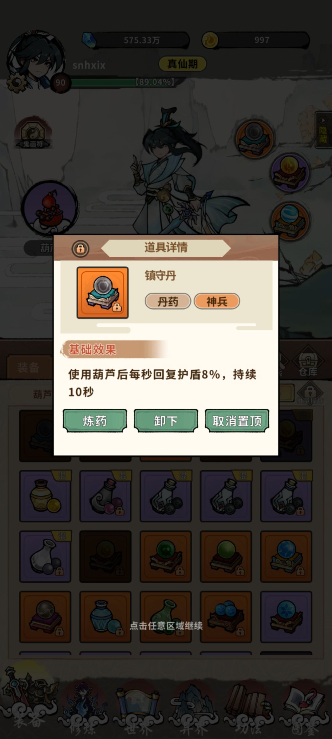 护盾流推荐使用回复40护盾的葫芦。丹药优先3种减伤丹药,搭配一个每秒回复护盾。