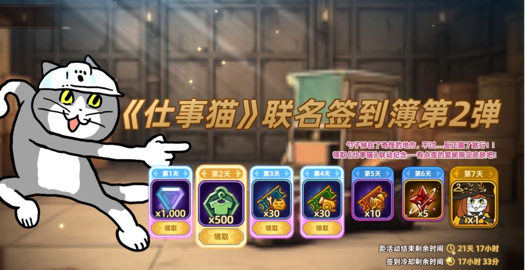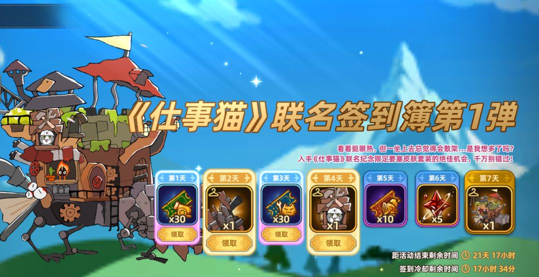 活动期间,累计签到即可免费获取联动纪念【不管怎样都会动的要塞】皮肤,与仕事猫一同冒险吧!