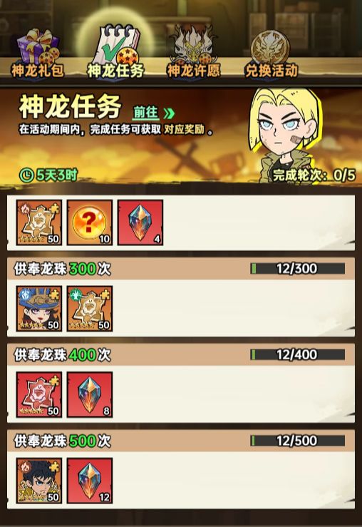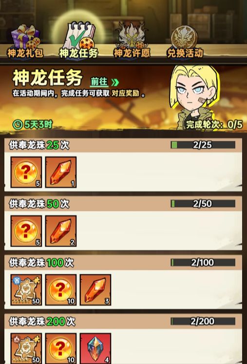 活动期间,完成神龙许愿中的神龙任务(供奉龙珠),供奉龙珠达到一定次数即可解锁活动限定【神秘龙珠】,【红水晶】,【五星英雄碎片】,【传说结晶】等多样好礼!
