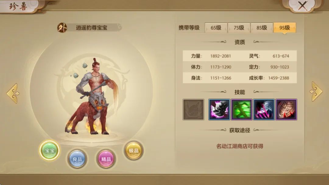 95级兽灵宝箱:使用后可随机获得稀有珍兽蛋:瑶姬仙子、二郎真君、废柴其中一种。