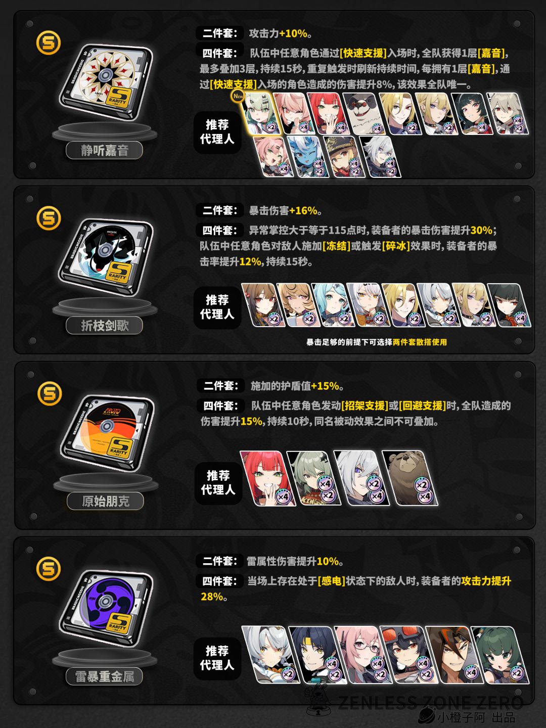 2、有的角色“×2”或者“×4”标识存在多个驱动盘上,小伙伴可根据自身驱动盘情况合理去选择即可,它们互相为平等关系。