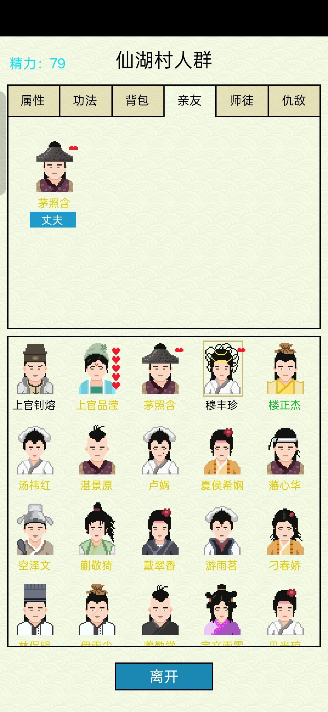 元婴圆满马上就要突破化神的妻子和他快要老死的练气期丈夫(黄名表示最高只能到练气期,黑名表示最高可以到渡劫期,NPC最高等级,离成仙最近的境界)