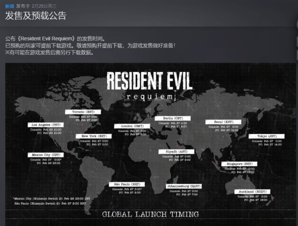 今日,卡普空正式开放《生化危机 9:安魂曲》PS5版本预载,PC版预载也同步上线,已预购玩家可提前下载完整游戏包体,为上线做好准备。国内的主机版解锁时间在2月27日凌晨0点,PC版解锁时间在2月27日下午1点(13:00)。