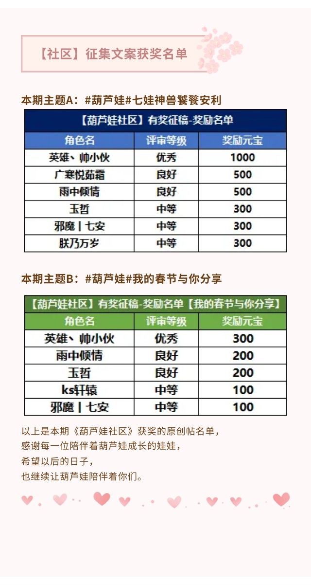 【葫芦娃】征集文案获奖名单