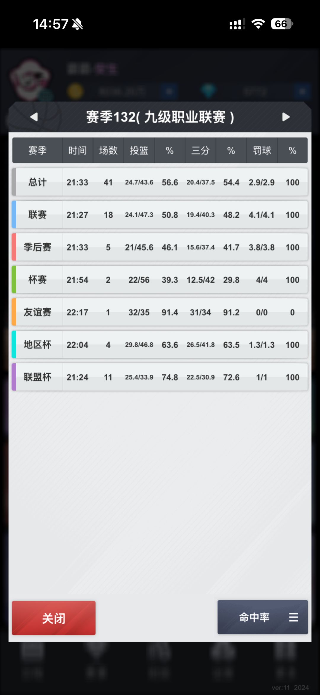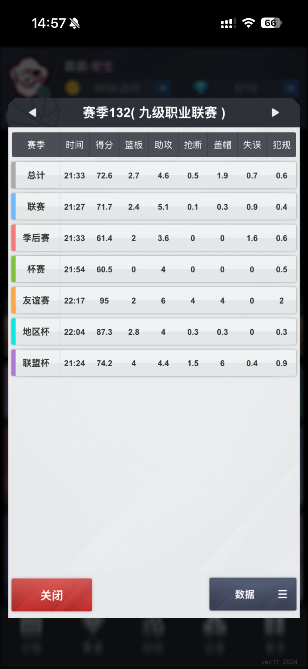 178cm的身高,让我从踏入联盟的第一天起就明白,控卫的路要比别人更拼、更快、更韧。从第129赛季身处9级联赛的青涩起步,到 142赛季开始站上14级联赛的舞台,这一路伴随的是联赛等级的步步攀升,更是职业生涯的沉浮与成长。我曾在冲级的关键阶段轰出单赛季71.7分的疯狂火力,用极致得分扛起球队前行;也在迈入更高等级联赛后经历过分值回落的阵痛,学着收起锋芒,用场均 4.5次生涯助攻串联起团队,在12级到14级联赛的淬炼中,以稳定的场均 40+输出,带着球队一次次顶住压力、站稳脚跟。那些从9级到 14级的跨越里,有升级成功的狂喜,有折戟沉沙的落寞,有单场 17次助攻的团队高光,也有单场10记盖帽的逆天表现,而这所有的起伏,都化作了我身上不可磨灭的印记。