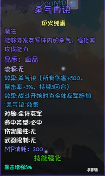 ②物法兼修,不怕未来可能出现的物闪或者法闪怪。目前物法兼修的门派只有佛门和密教,而密教还绑定门派被动,对队友的辐射比较小,只能是小明看阵容补充物理或者法术输出。而净罪骑则可以做到小明走物理的同时,辐射火系队友(高贵的15%独立火加伤),由队友来补充法术伤害。
