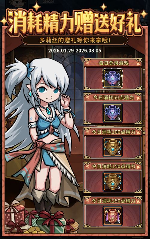 每日消耗精力,最高可获得神话、钻石秘制魔法罐,打开可随机获得钻石契约兽、神话契约兽等好礼