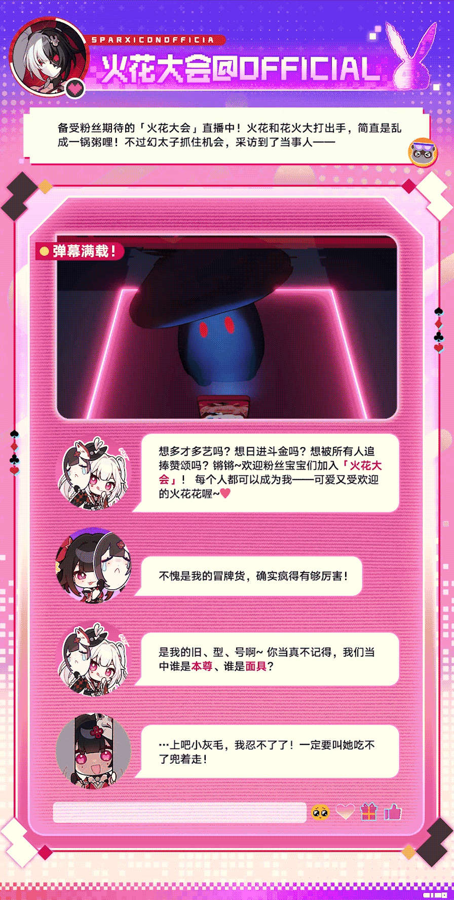 哔啵!二相乐园当红主播「火花」宣布加入幻月游戏,成为首位唱名的谒者!