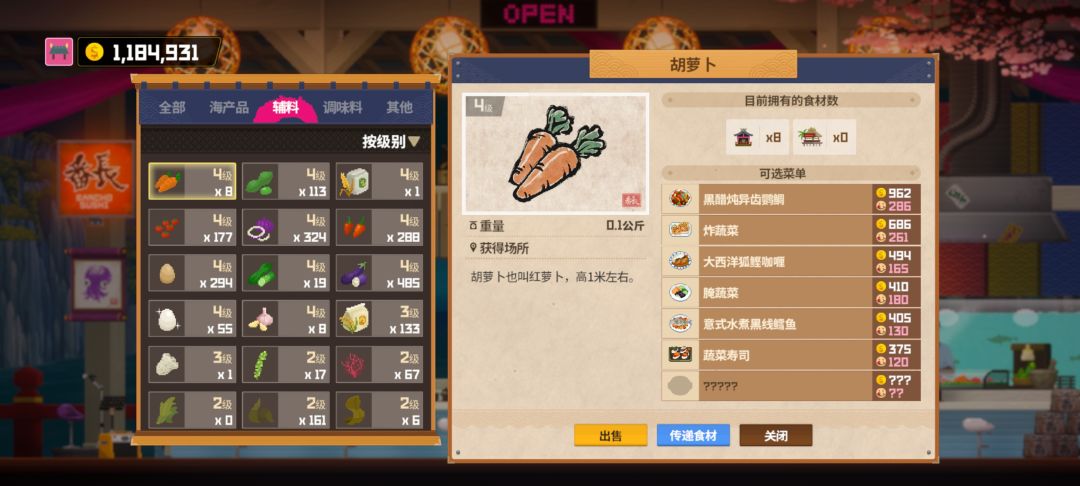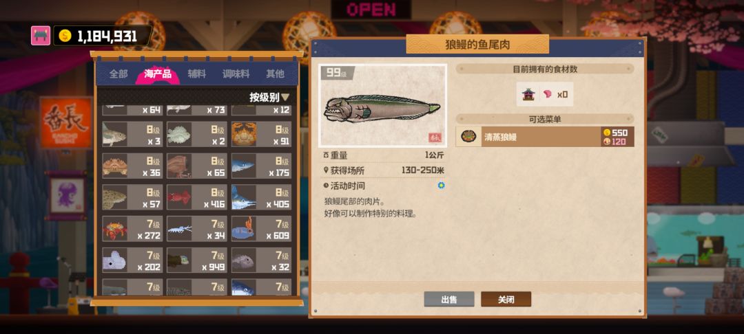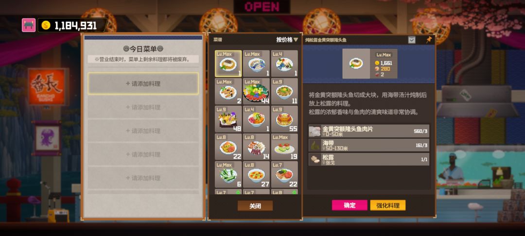 料理贵的基本都满级了