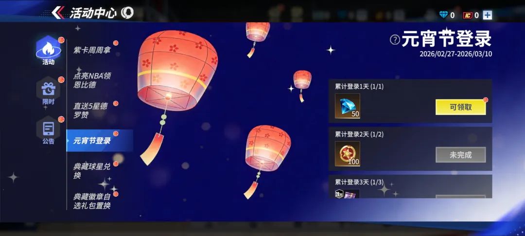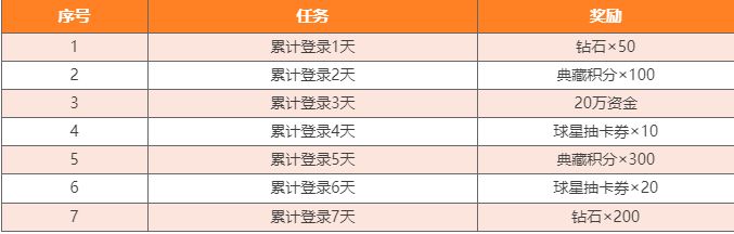 元宵活动期间,累计登录天数越多奖励越超值!超多钻石、球星抽卡券、资金包、典藏积分等你来拿!详情如下: