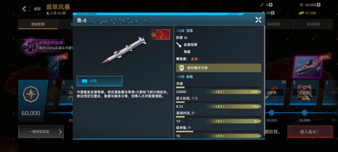 我们再来讲讲氪金池的另外一位 093AG 型。093AG 型的强度呢有点像它的孪生兄弟 039。但是不同的是,03093AG 呢有一个锁定的潜洲际潜射导弹,虽然耐久低,但是发射两枚,并且呢装填很快,这也是它的优势之一。
