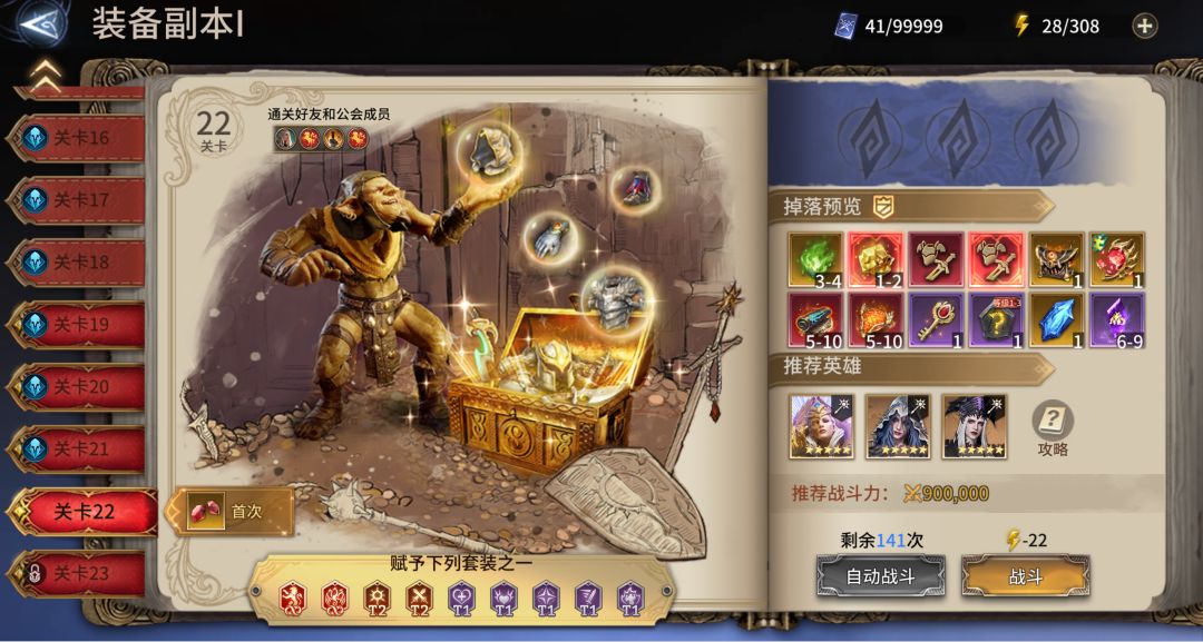 装备1-21,3-21,副本2没哈苏不好打懒得管了。