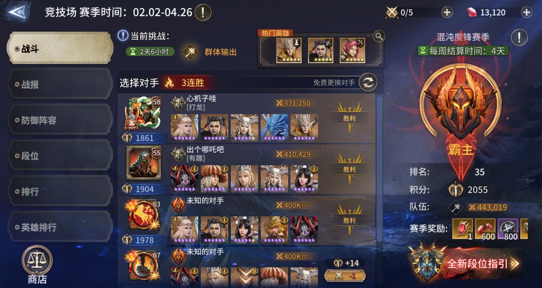 竞技场一般可以巅峰霸主。但是最后一个要单体就不行。
