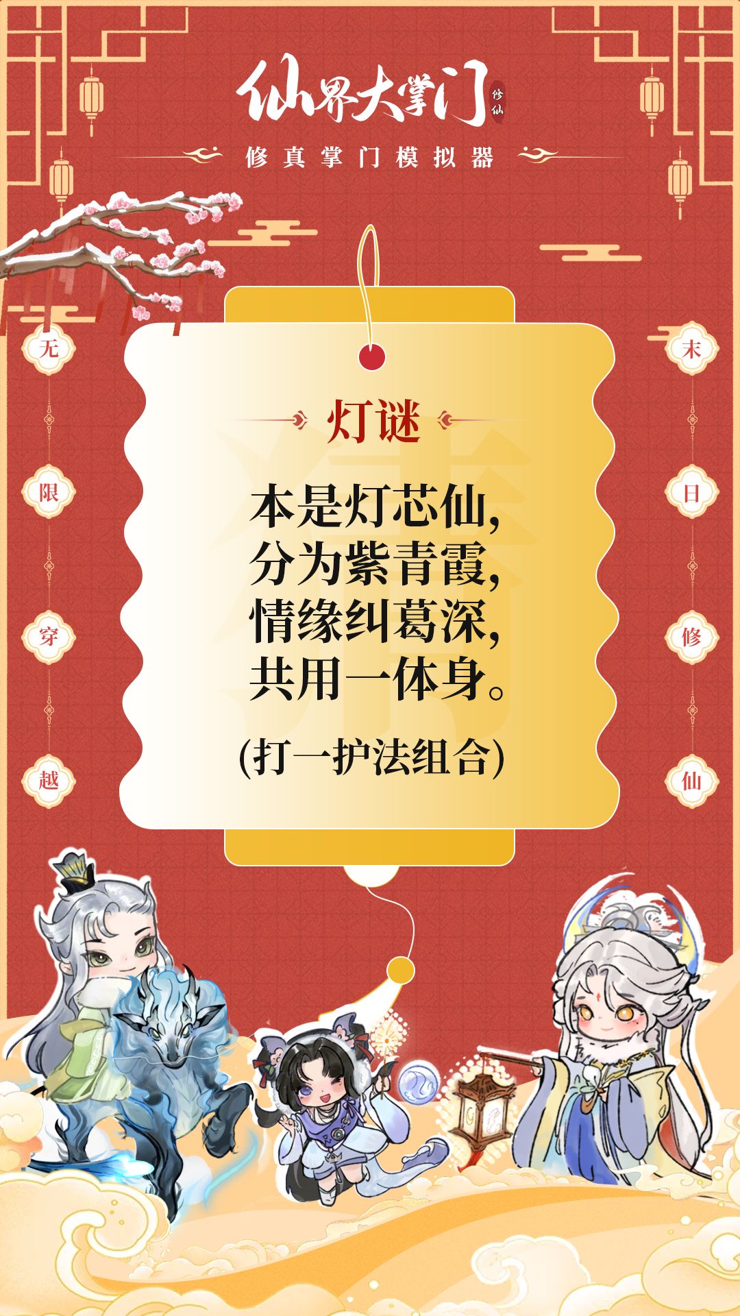 我宗最是潇洒不羁的护法剑逍遥,携八道趣味灯谜而来——自初八至十五,每日一道灯谜,邀您共乐。谜底皆藏于宗门轶事与护法传说之中,考考您是否心细如发、博闻强识~