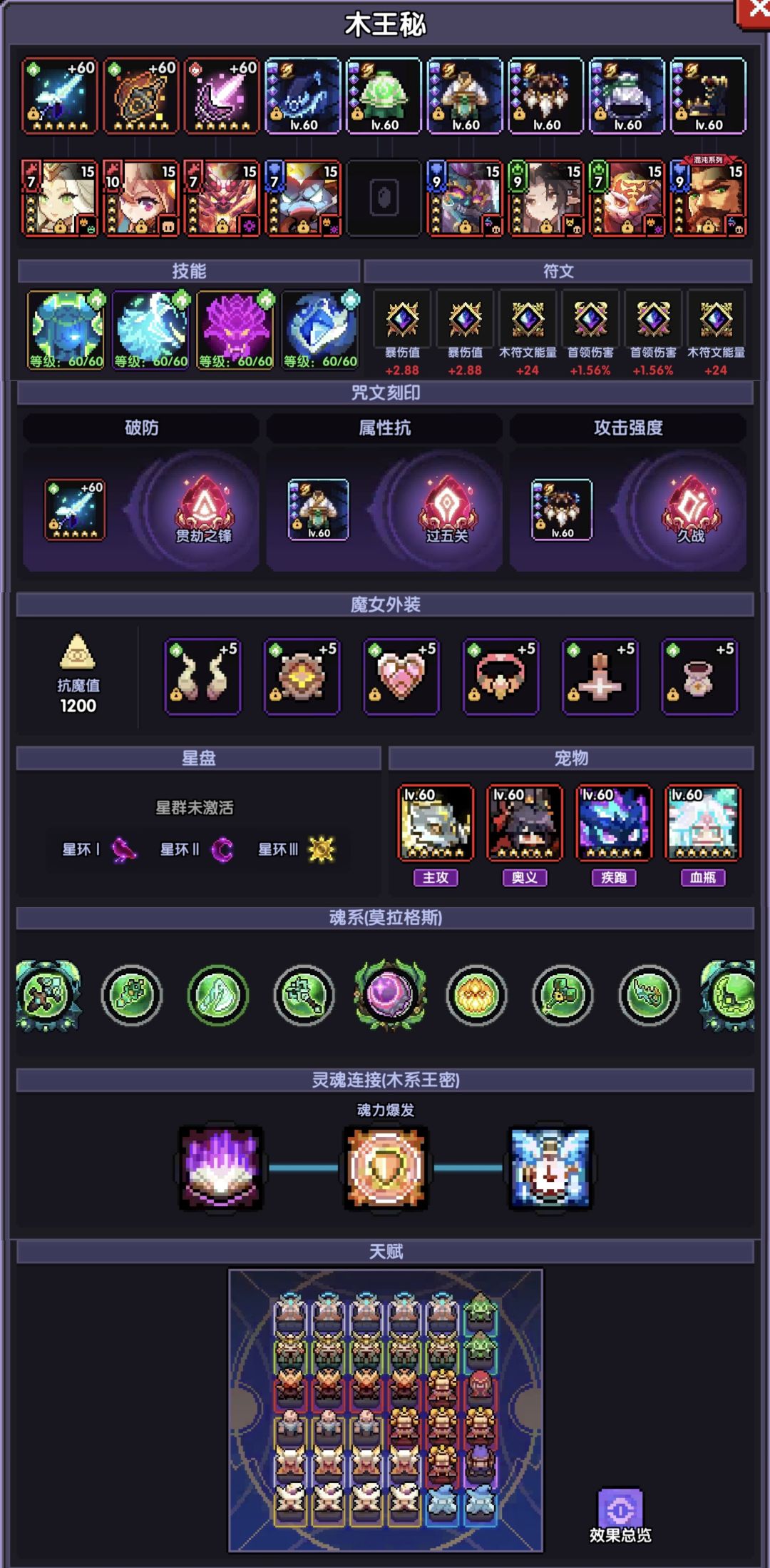 魂力属性: 优先满足护穿和暴击需求,再点满首领、爆伤值、木攻,剩下点攻强和无限攻强即可