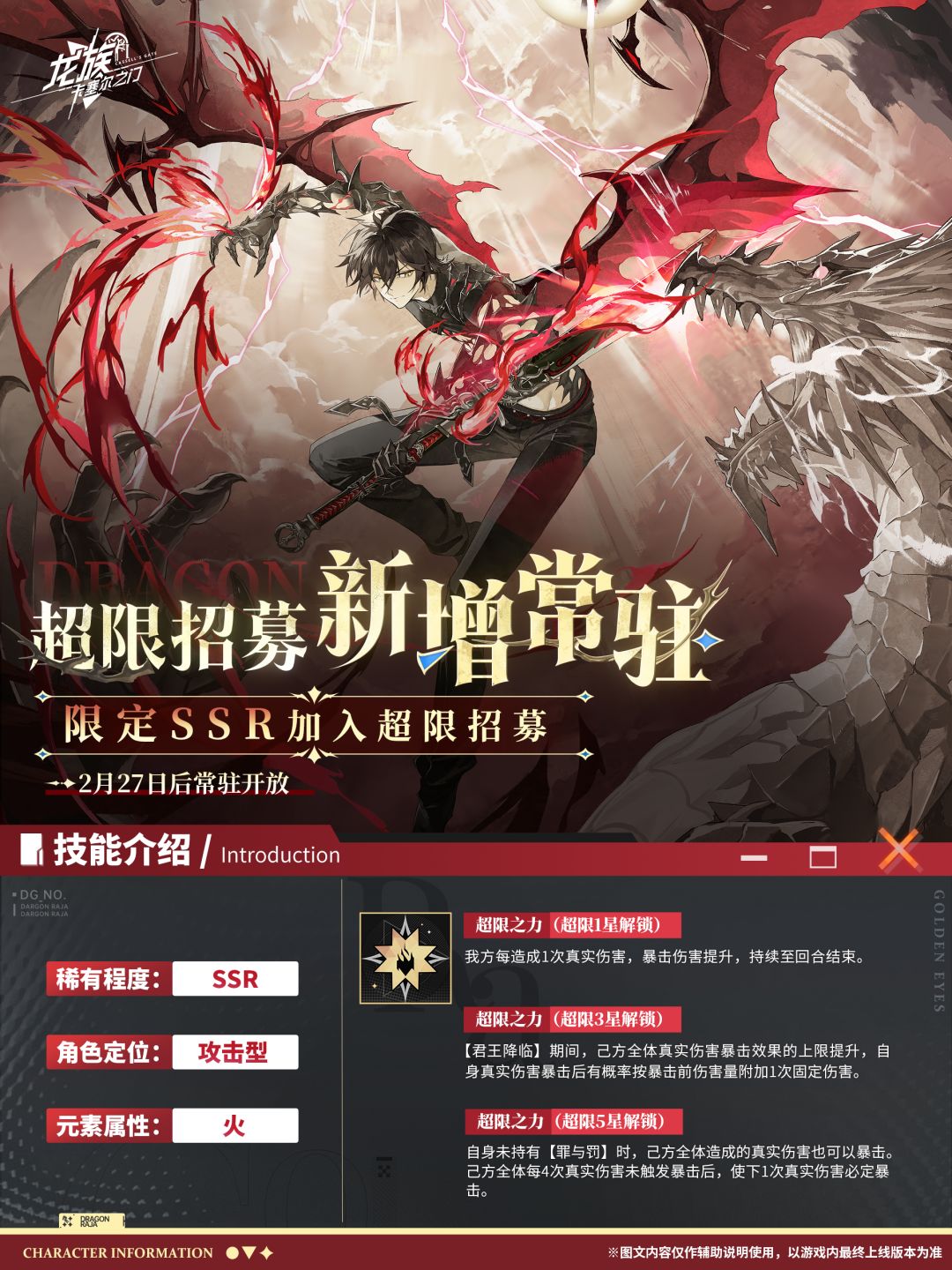 亲爱的专员,SSR伙伴「弑罪路明非」即将于2月27日加入超限招募!