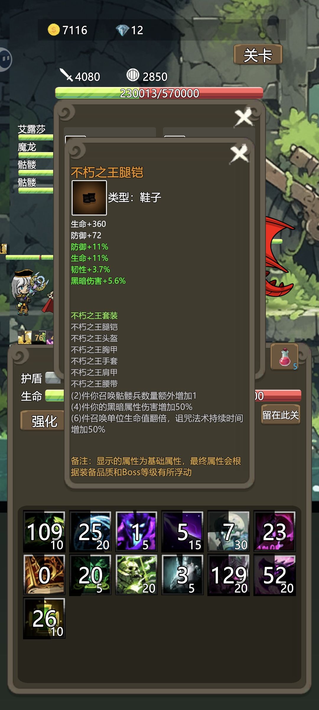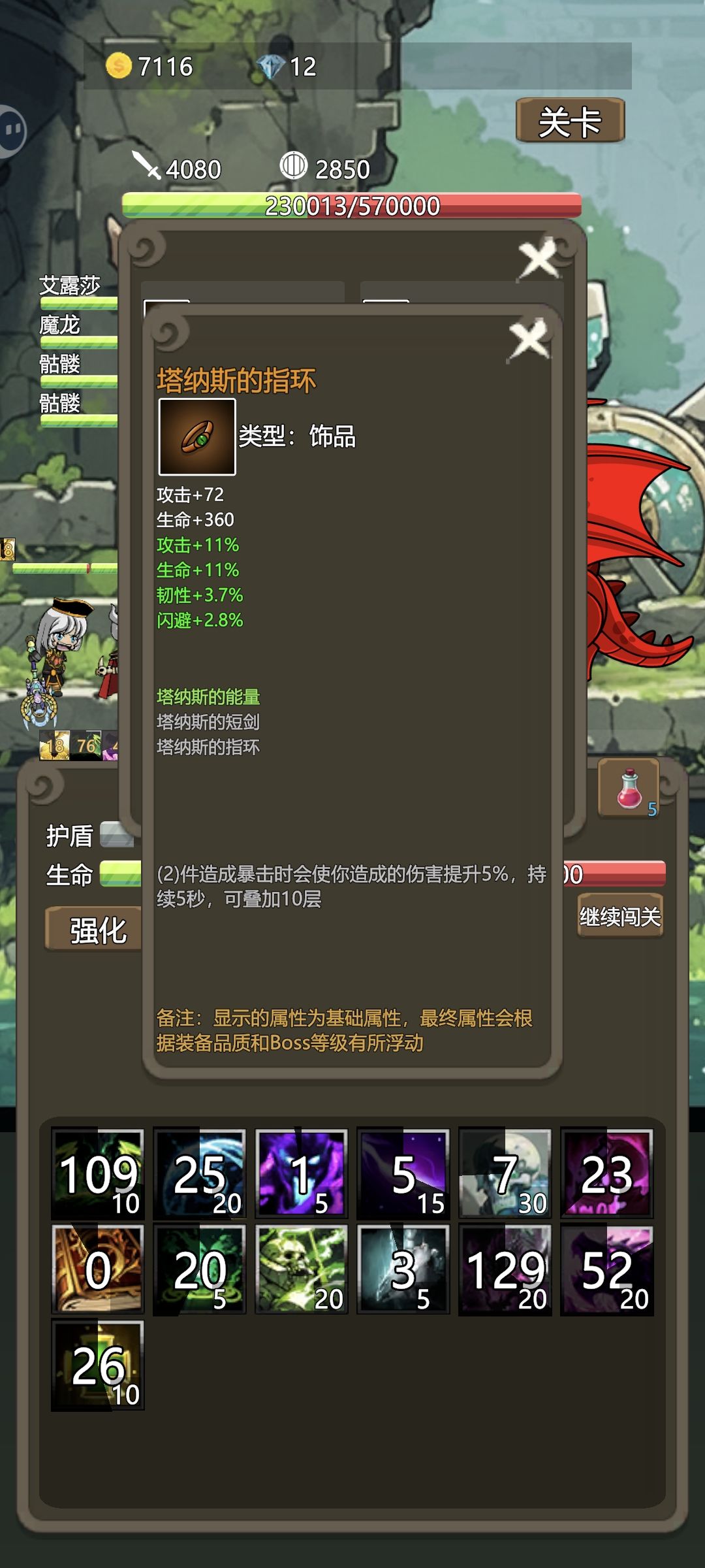 有好多人通关了没有记录,装备养成其实很重要!需要五条龙数据的自己看看,黑暗深渊五条龙之前的装备没必要太纠结,五条龙的装备才是王道套装!五条龙各有各的技能,这是红龙的!有个持续杀伤领域!血少防低的死得快咯