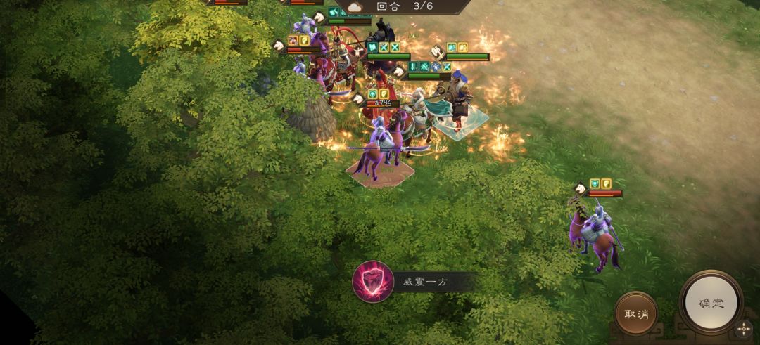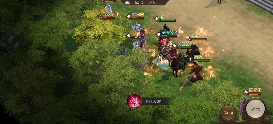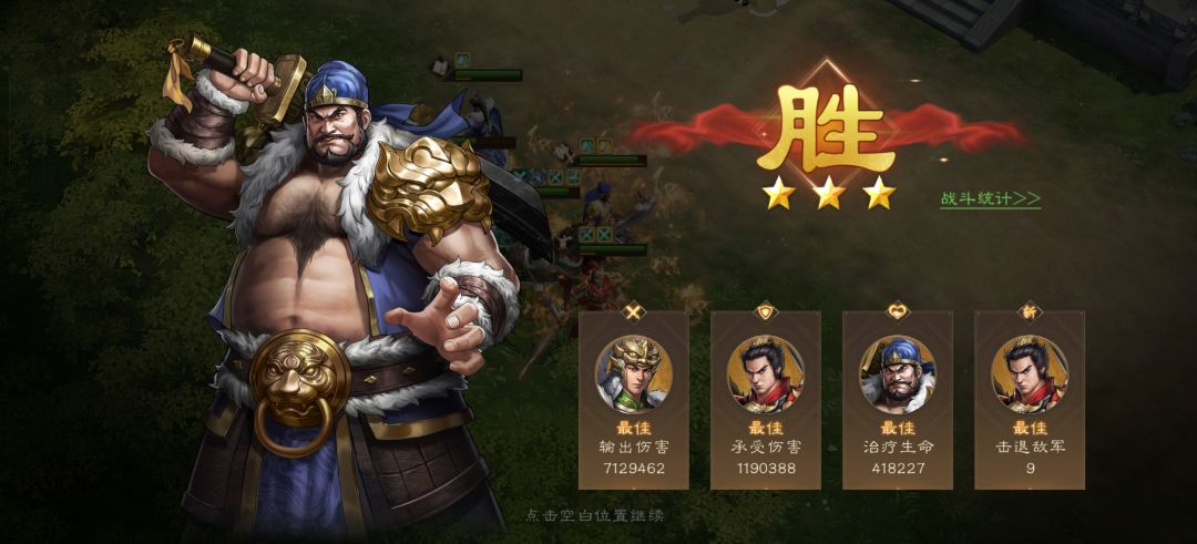吕布开技能斩杀敌人骑兵。敌人回合时会被许褚反击全部斩杀。三星通关胜利