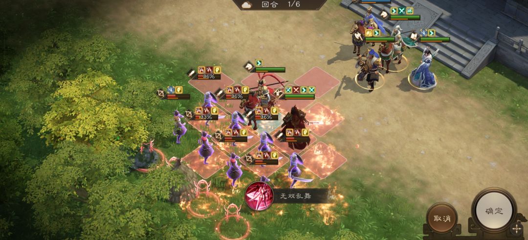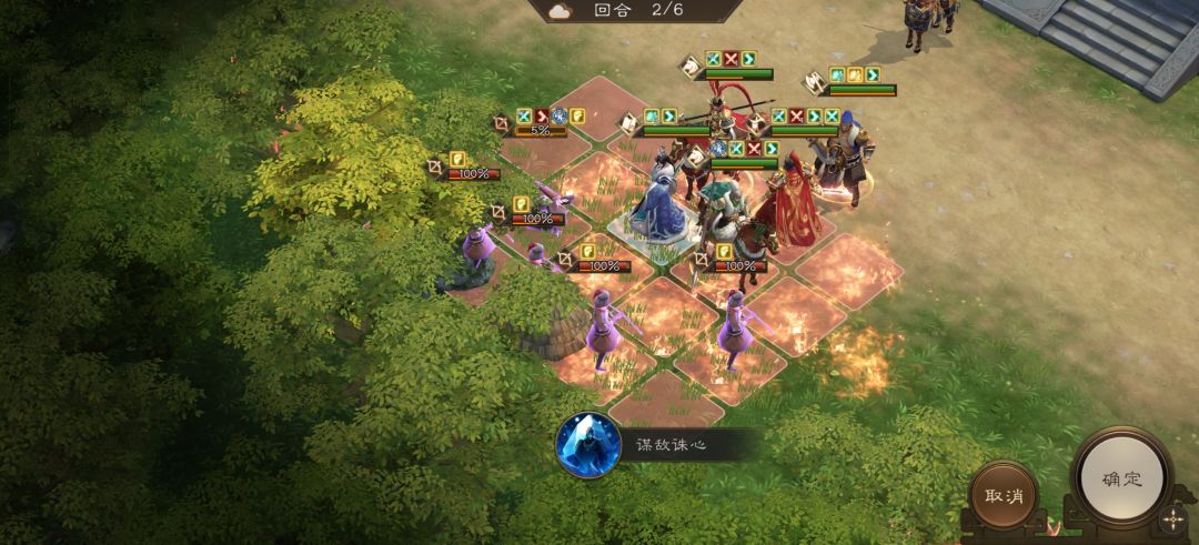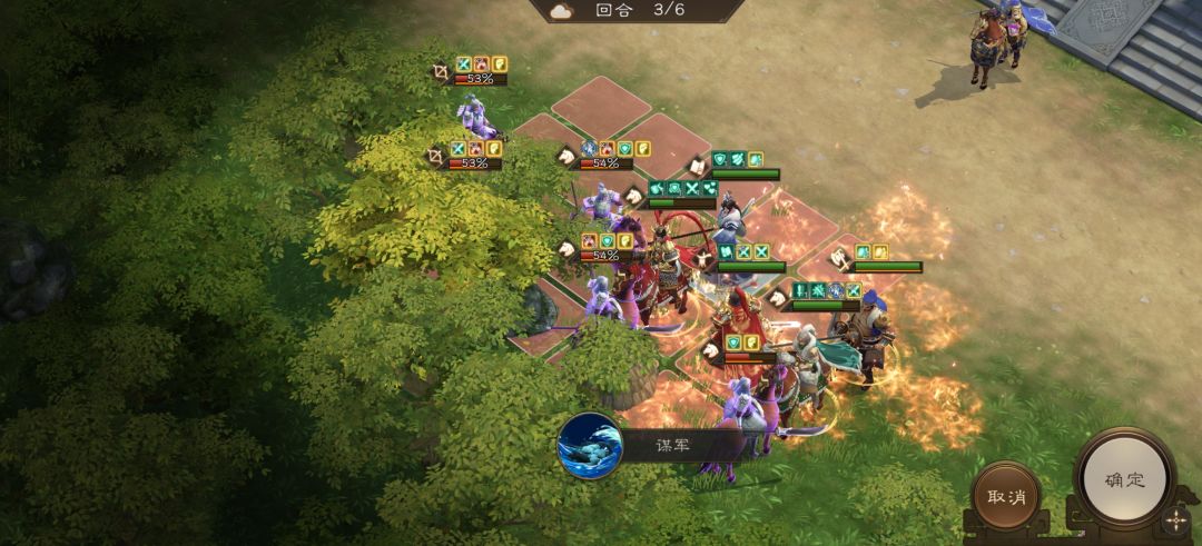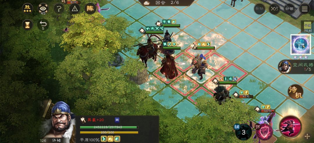 许褚前进到上图位置开辅助技能为郭嘉加增益。注意许褚站位守护好每个友军。