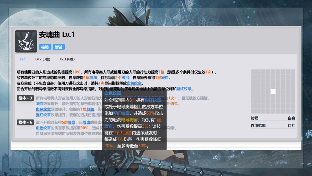 一椎:加快凝血的叠层速度,额外释放的一次血色纹章主要还是在纯电队提升比较大,总伤害提升17%,如果是在刀电队,提升就仅有4%了。