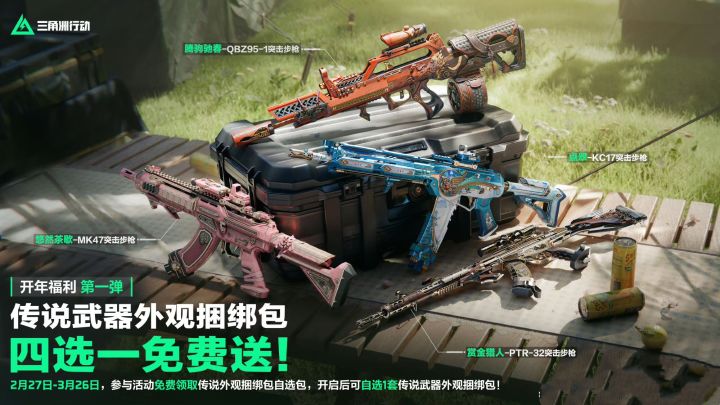 今天,《三角洲行动》官方发布开年福利第一弹活动,推出传说武器外观捆绑包免费自选活动,全体玩家均可参与。