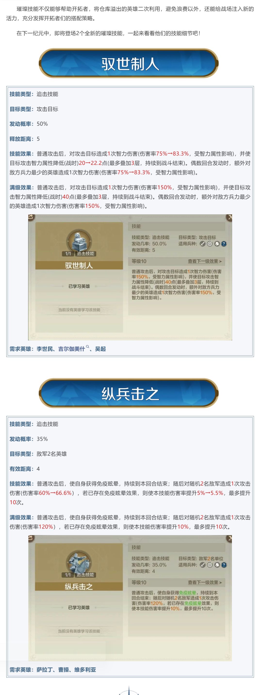 新纪元情报丨璀璨技能上新!驭世制人、纵兵击之即将登场