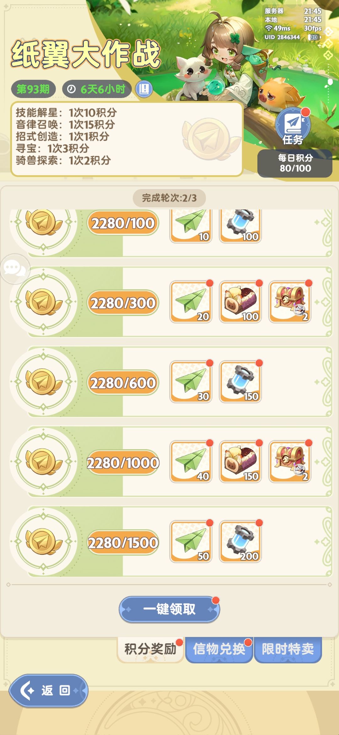 省流,走到6层宠碎箱子一共3340分,日常全做完80*8=640分,商店花1200钻能买300分,剩下的可按上图资源释放方法,在2期纸飞机均不爆分的情况下,就能拿到6层宠碎箱子,途中还能拿到5金闪闪,6极共鸣石,相当于用两期纸飞机资源,拿3期半纸飞机奖励,超值。还在犹豫的小伙伴抓紧时间入手,最后6小时,看到就是赚到