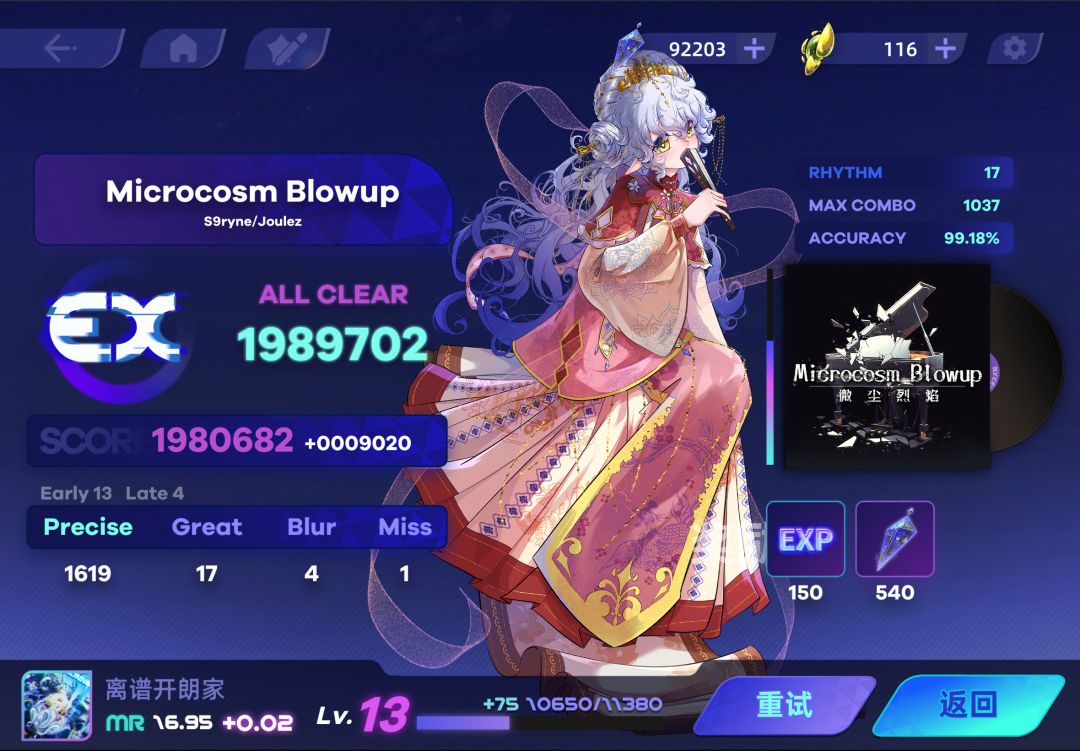 纪念第一个上EX+的17和MR飞升17,也恭喜自己18级成功上EX了