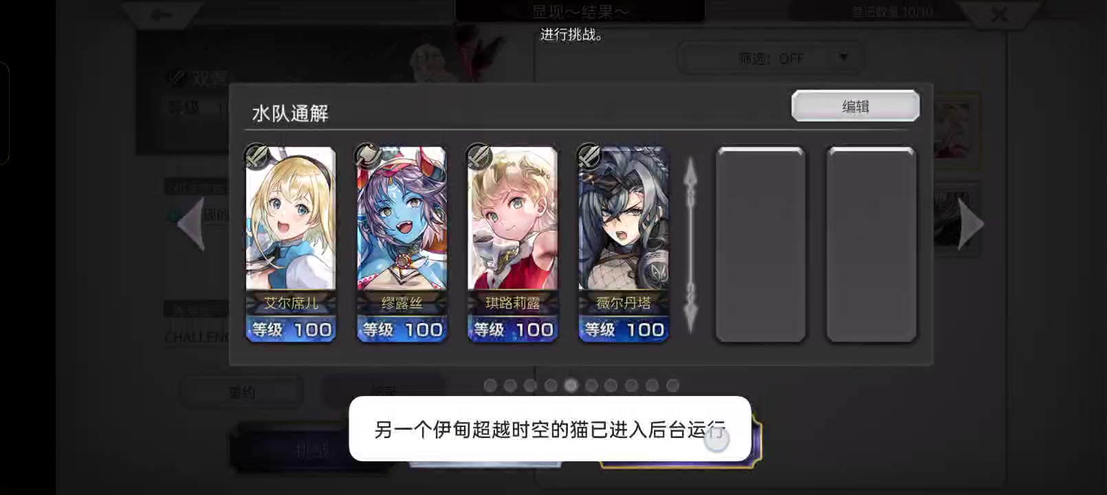 结专必须要让特定的角色上场,所以这里没有办法使用es魔兽娘,不然理论上也是可以2t的.