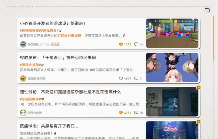 【1】. 让每个玩家可以在热门帖子下自由评论,可以设置字数和条数限制。最好还能和游戏角色的账号互动!(比如:某位 “仙舟第一杀手”。)