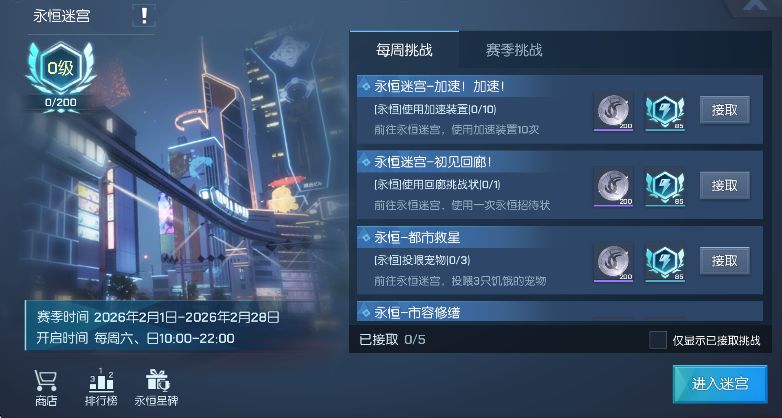 本赛季次元之境排行榜关闭,不再记录通关层数与通关时间。
