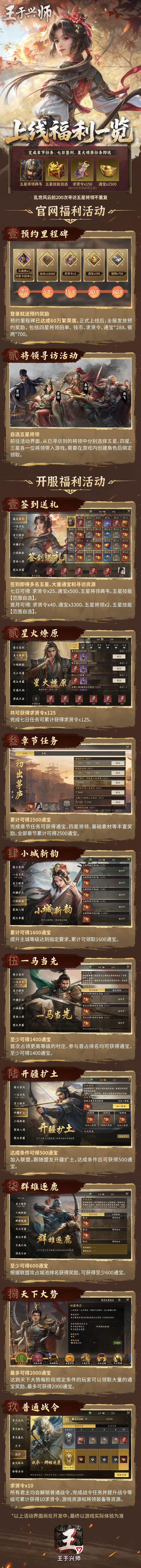 游戏内准备了以下的开服福利活动,助力各位君主征战疆场!