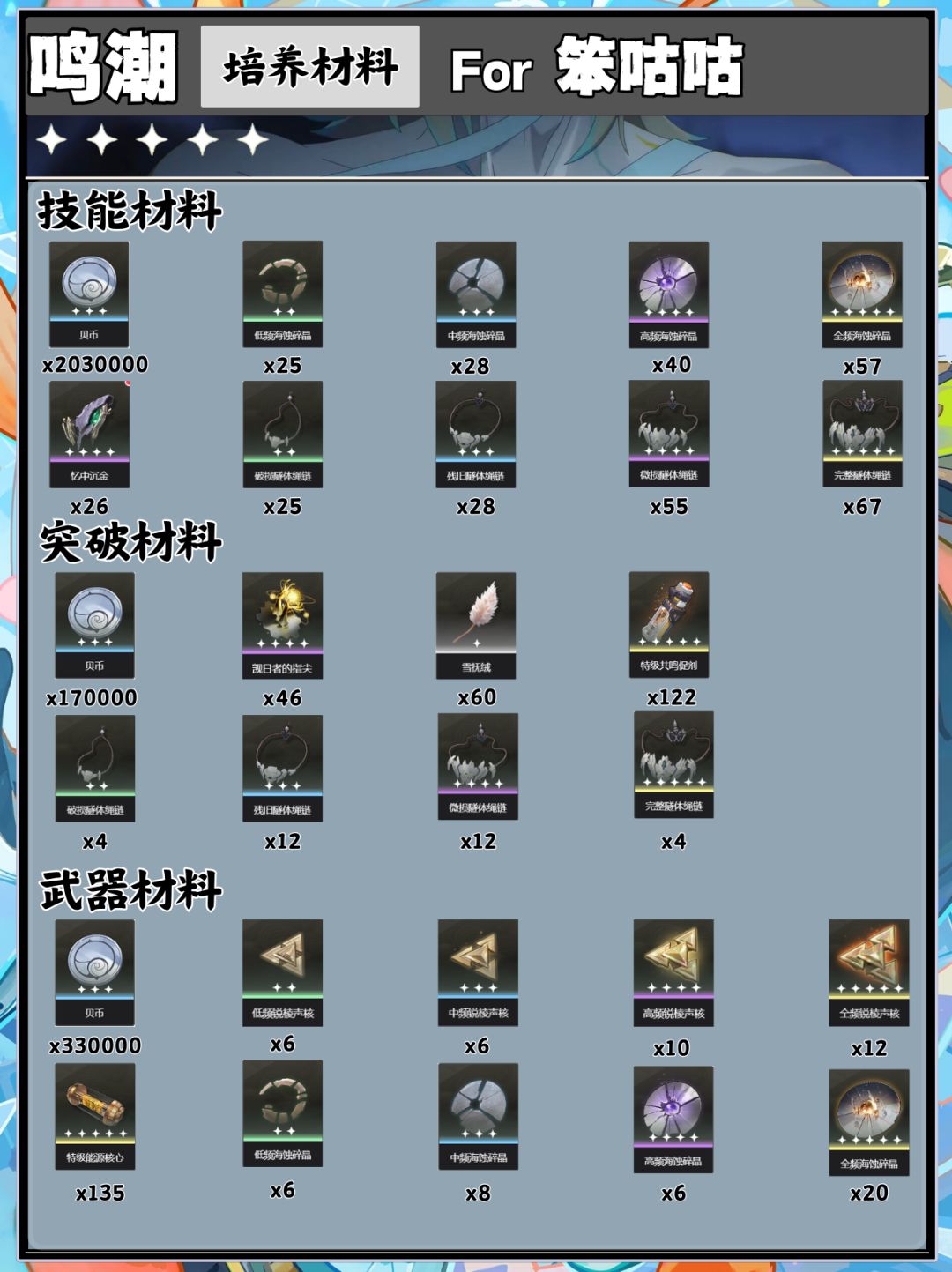 (内容制作数据相关参考鸣潮wiki,有错误引导,欢迎大家指教批评,笨某一定虚心接受!!)