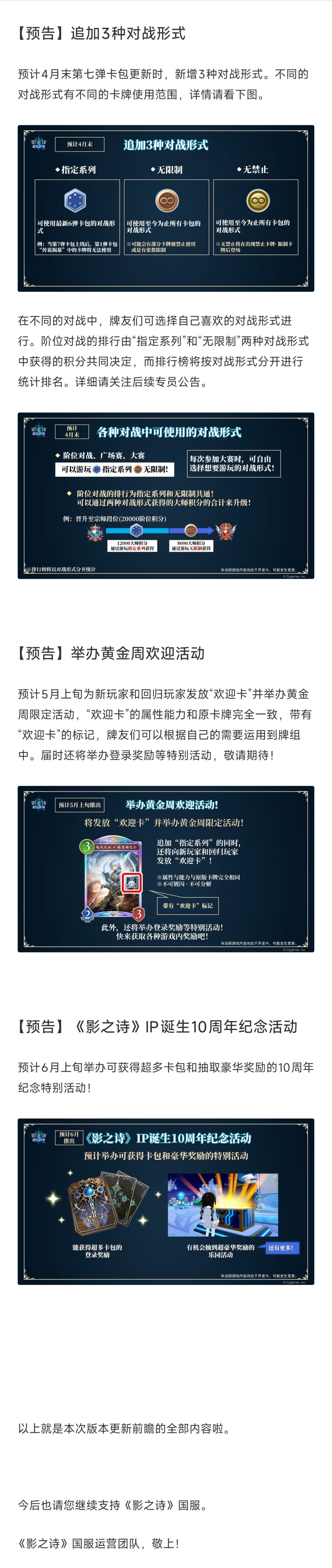 亲爱的牌友们:第六弹卡包“天启契约”即将在2月26日(周四)上线,我们希望通过这篇专栏向各位汇报关于《影之诗》新资料片“超凡世界”的版本更新前瞻内容。详情请查看长图内容。