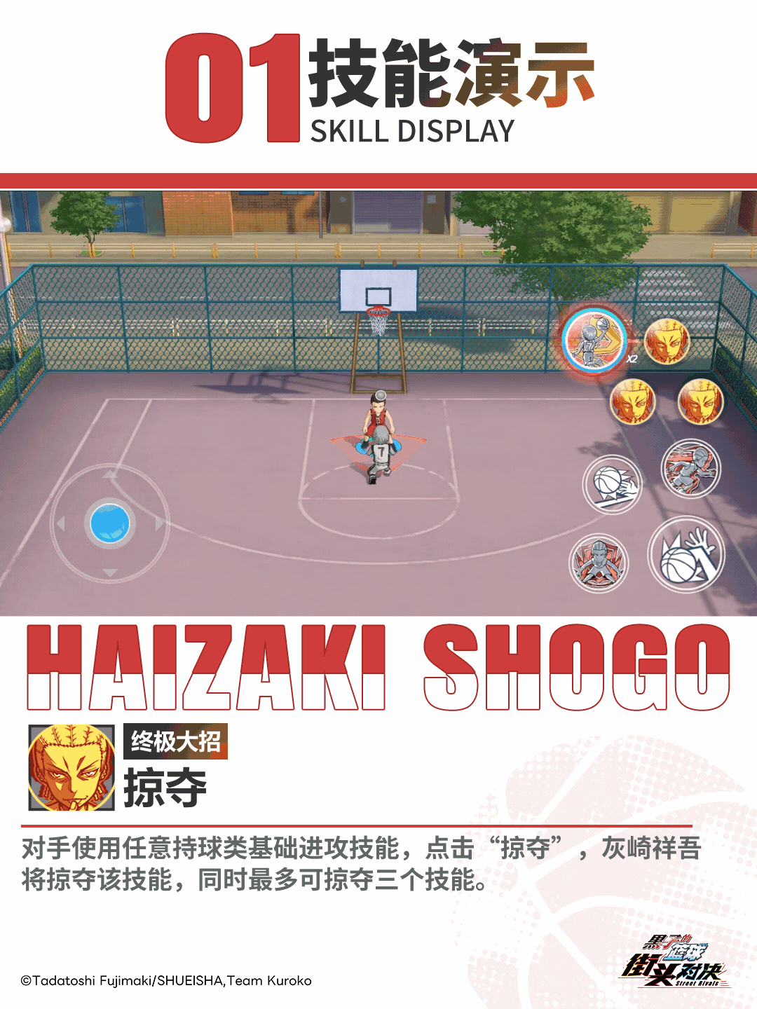 对手使用任意持球类基础进攻技能,点击“掠夺”,灰崎祥吾将掠夺该技能,同时最多可掠夺三个技能。