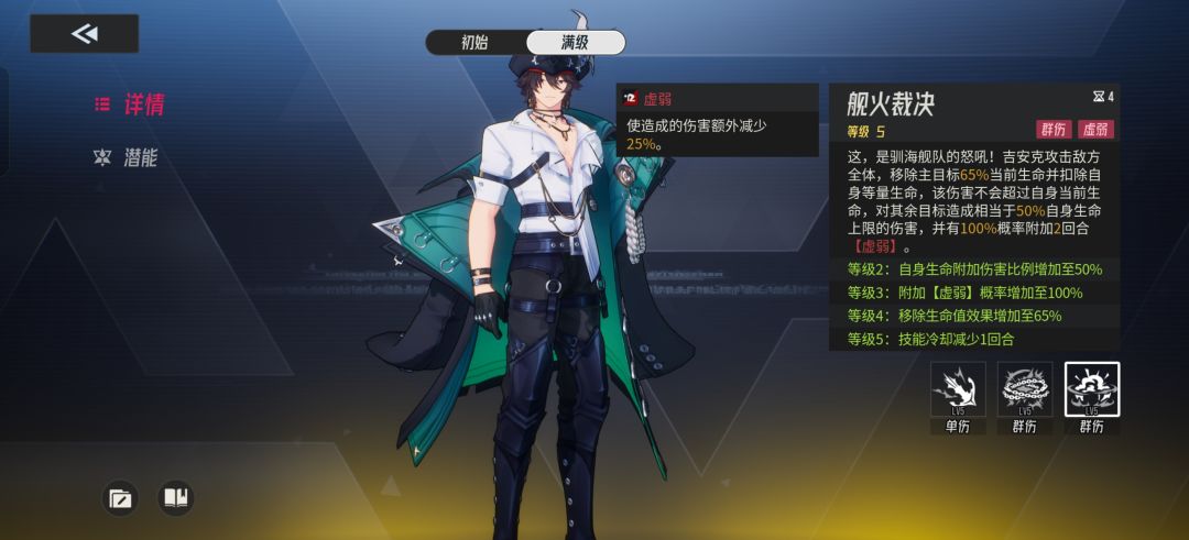 终结技是吉安克主要输出的技能,使用后会移除主目标生命并扣除自身等量生命,对其余目标造成相当于自身生命上限的伤害,并附加两回合虚弱