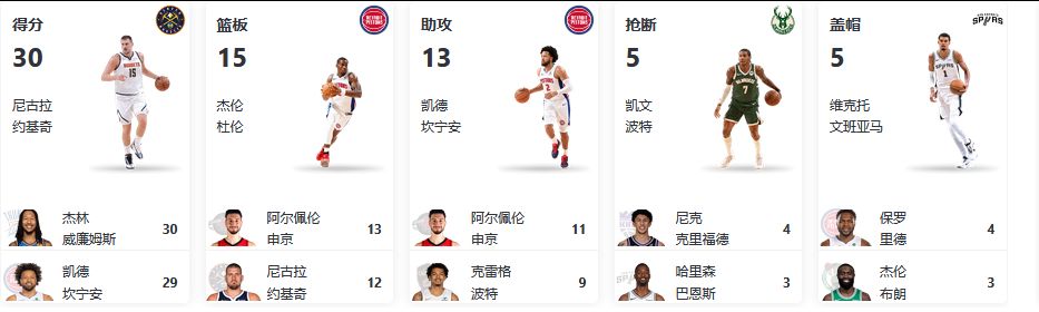 相信昨天大家都猜中了一个文班亚马的盖帽吧~昨天球球本来想要猜得分王是约基奇的,但是刷到了一篇文章说他还在恢复期,所以就没选他,没想到今天还是拿了得分王