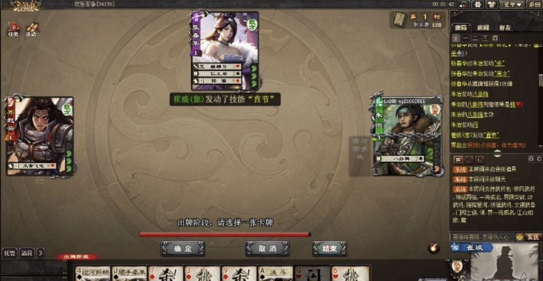 另一种配合的思路,是帮助崔琰在回合外发动直节,如朱治给崔琰装备回合结束可以直接造成伤害,鲍三娘、sp马超、sp孟获、袁绍等武将可以指定崔琰出杀或闪再额外造成伤害。