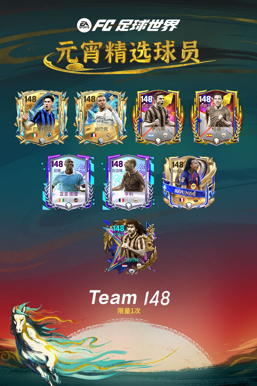 2月26日10:00-3月4日24:00 ,玩家可以参与148能力值元宵精选球员交换。该交换包含姆巴佩、巴斯托尼、古利特、亚亚·图雷等8位游戏内148能力值热门球员,该交换限量一次。